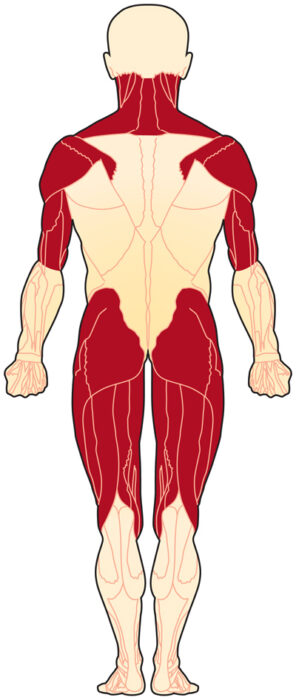 - Weakness in the muscles closest to the center of the body, like the shoulders, forearms, hips, thighs, neck, and back