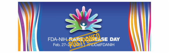 From the RDD website: “After much consideration, we are postponing FDA-NIH Rare Disease Day 2025 and will reschedule it to occur in the coming months. Rare Disease Day is important to all of us, and we want to make sure we can fully focus on the event to make it the best that it can be. We appreciate your understanding and thank you for your continued work raising awareness, developing cures and treatments, and offering resources that give hope to the millions of people in this country affected by rare diseases.”