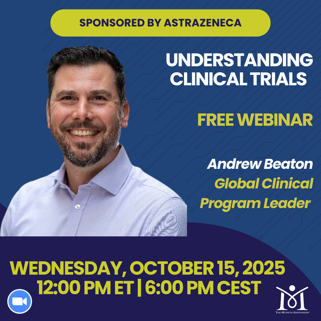 Virtual EventOpen to all regardless how long ago you joined TMA! Living with myositis can be challenging, but you are not alone. Please join us virtually to learn more about education and resources to help you on your myositis journey and make new friends who know, understand, and share your new normal. Connect with people like...